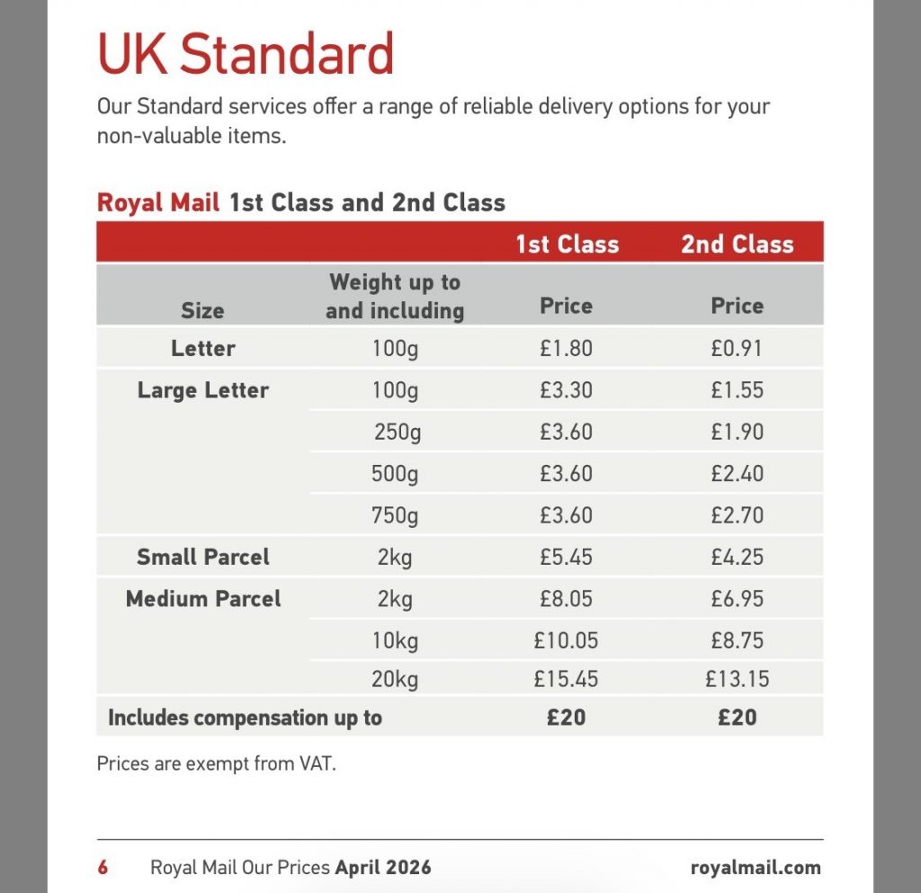PPS New price hikes HERE. (£3.60 to send a standard letter overseas is actually quite a shock.)