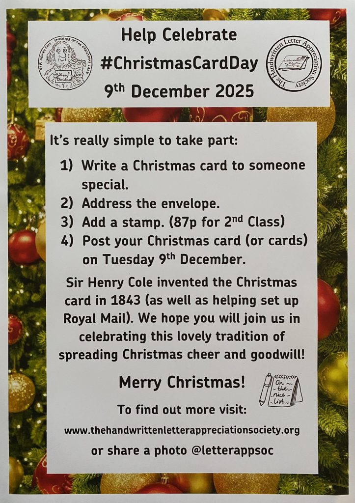 We’ve all understandably cut back on the number of Christmas cards we send each year because of our busy schedules, as well as the cost of stamps, but we’re just asking that however many you are sending that you send them on Tuesday 9th December in honour of Sir Henry Cole and #ChristmasCardDay.